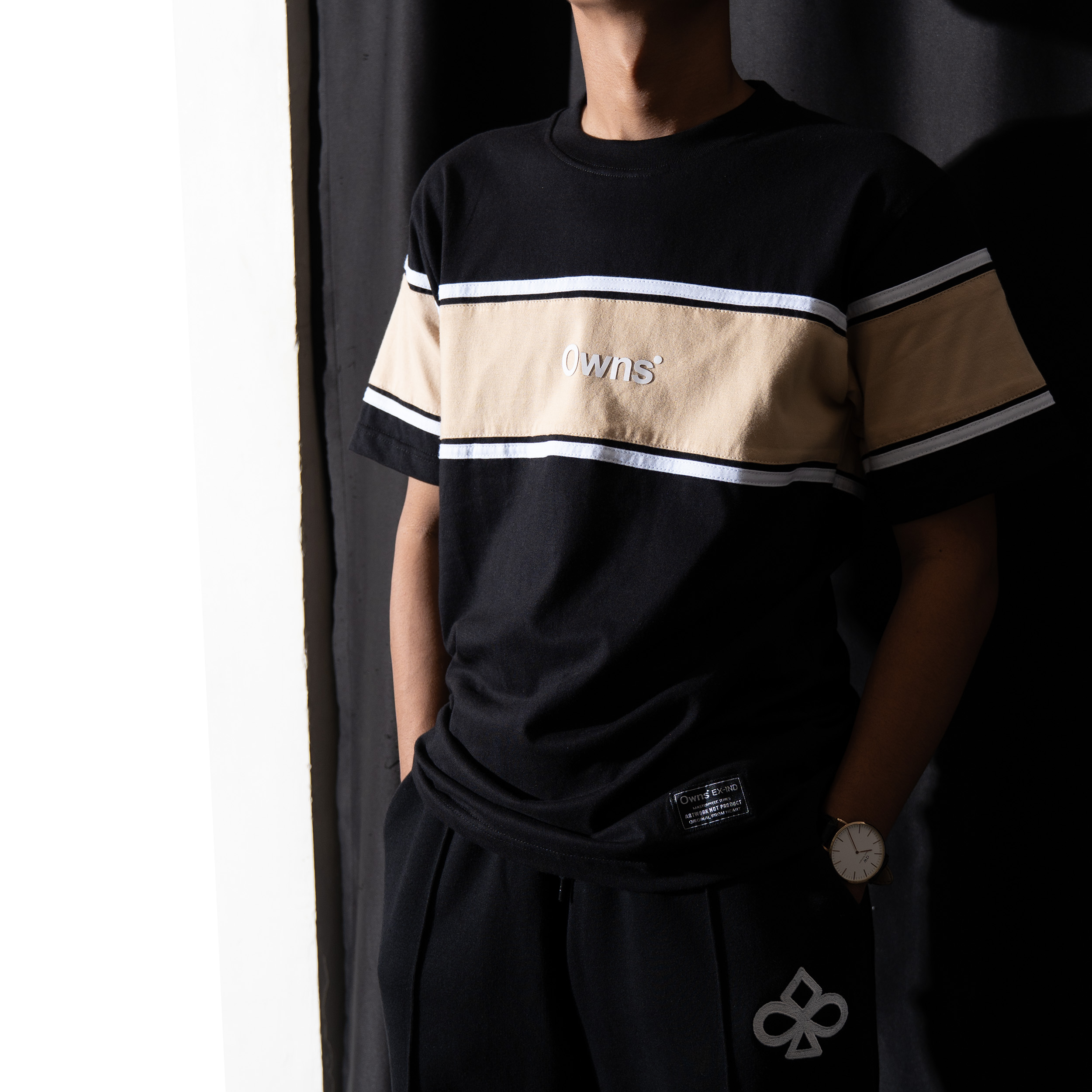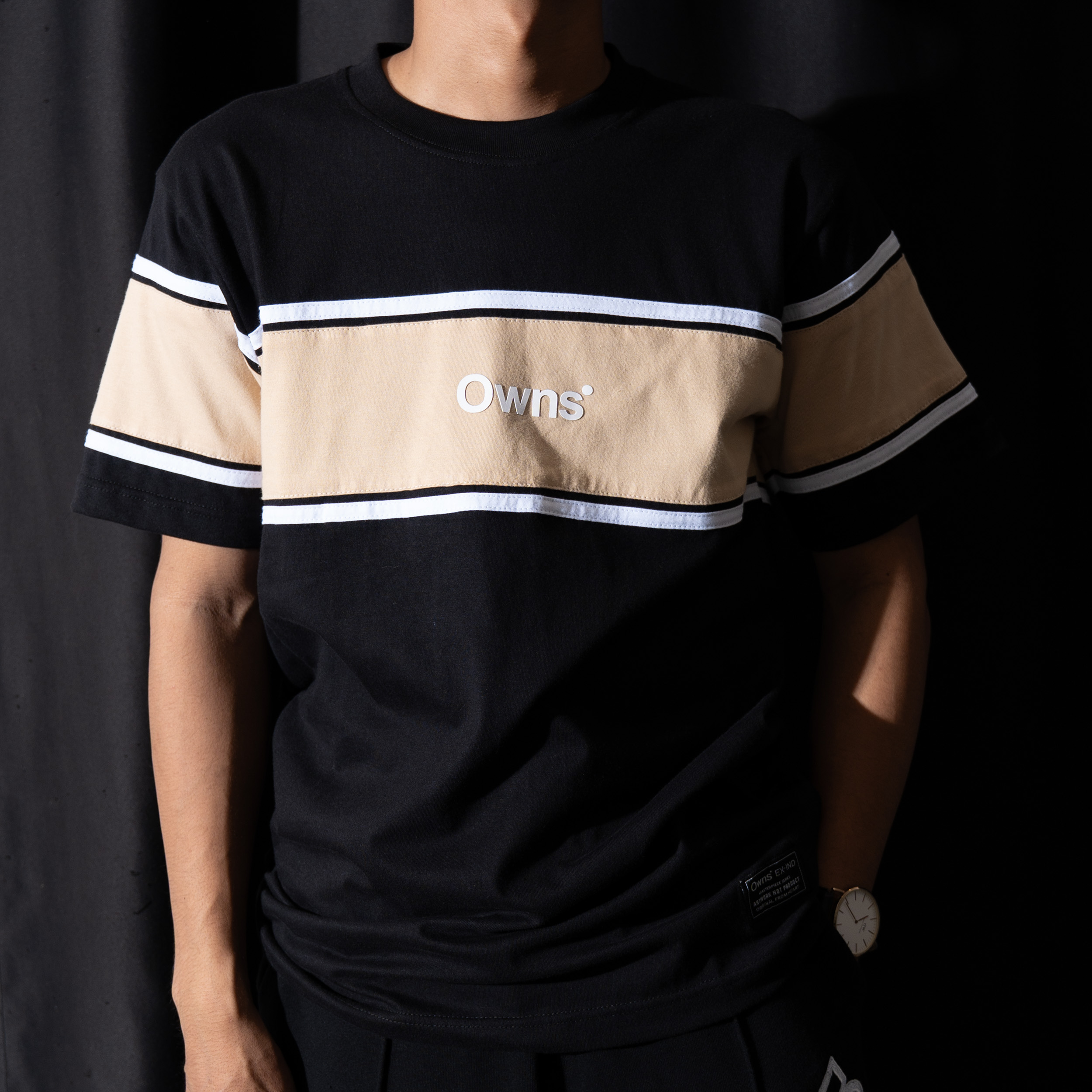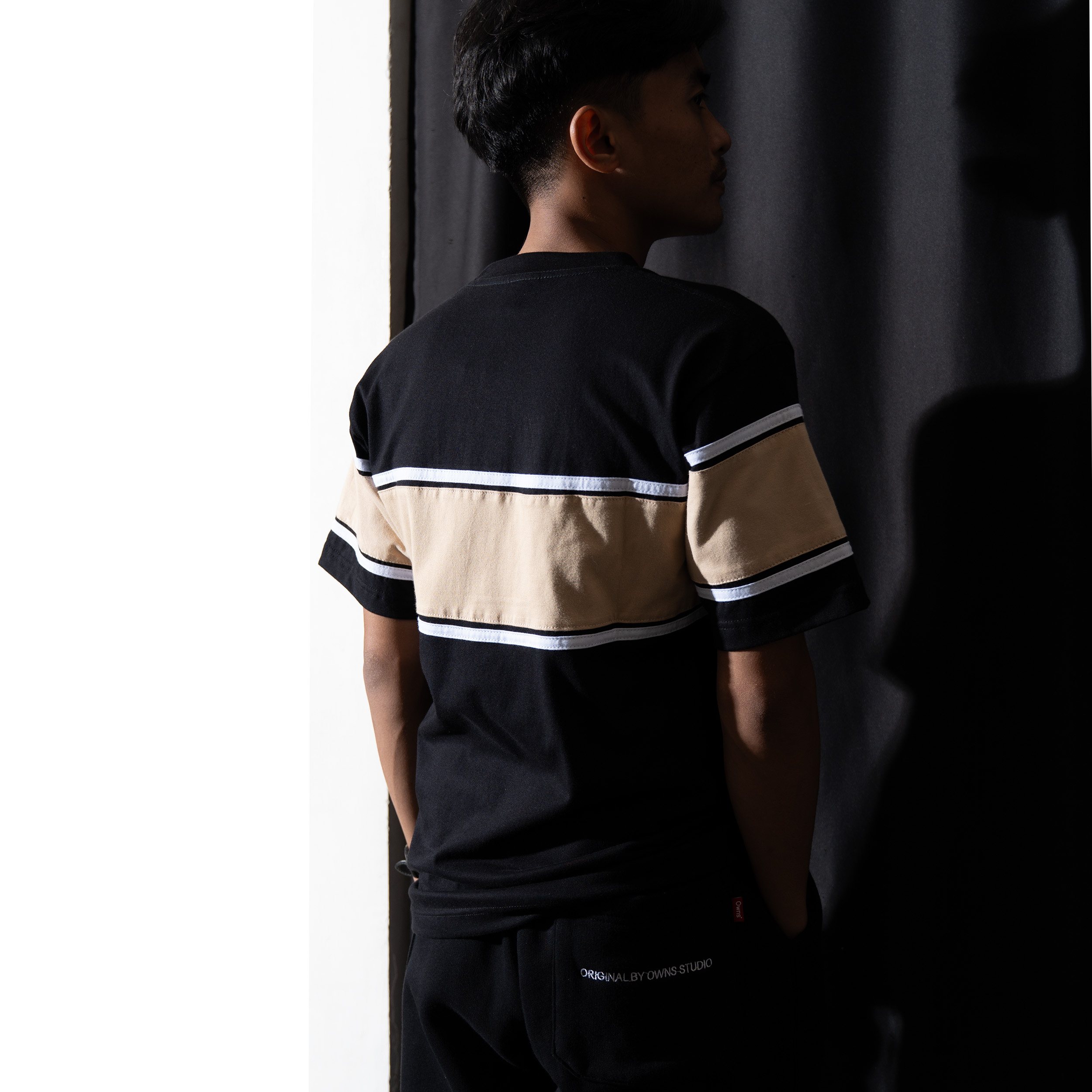 TS VR Castle Beige adalah t-shirt color-block modern dari OWNS Studio yang menggabungkan kesan clean, simple, dan versatile. Mengusung warna dasar black yang bold dan timeless, dipadukan dengan panel beige pada bagian dada serta lengan. Aksen garis putih kontras di sekeliling panel memberikan karakter sporty-minimalis yang khas dan mudah dikenali.