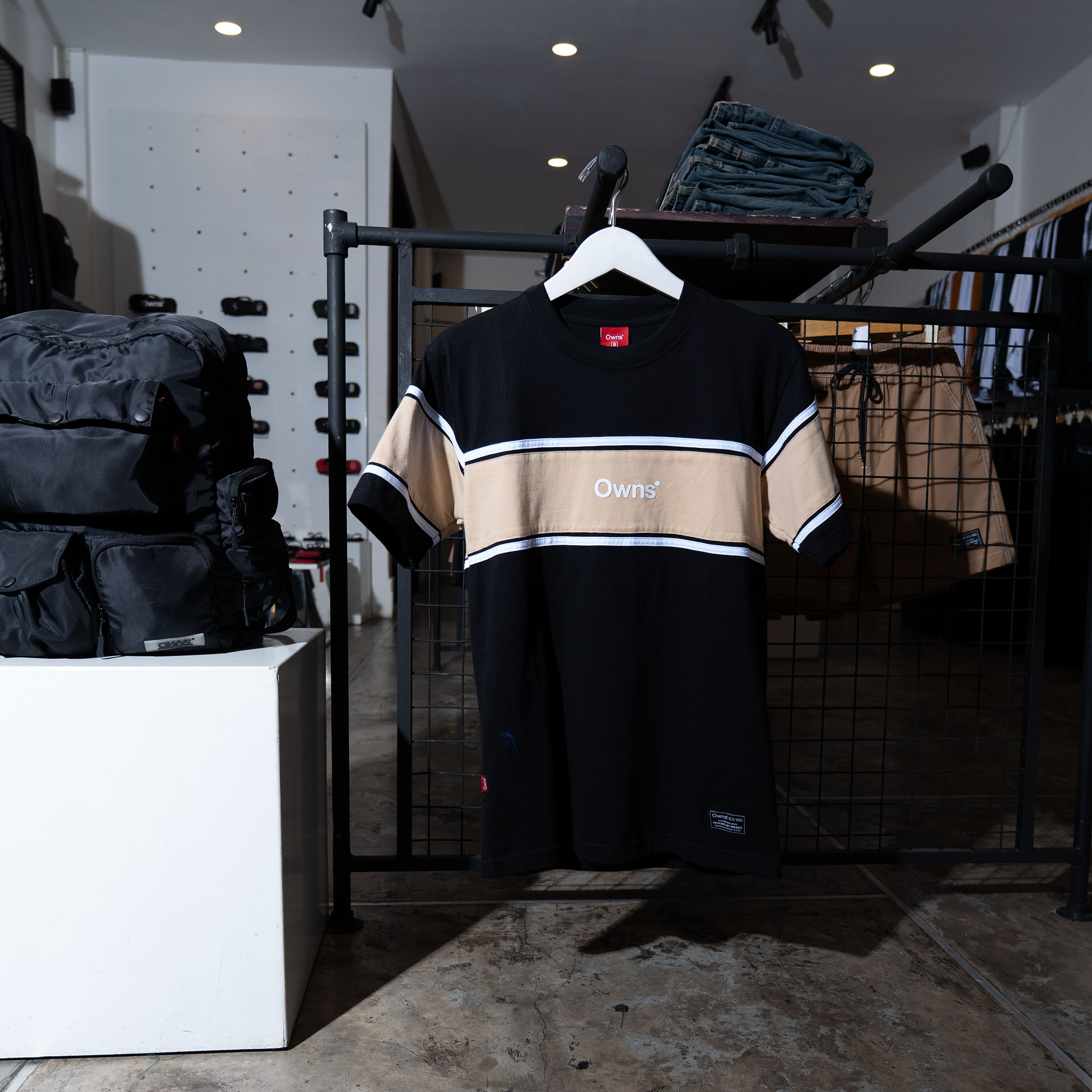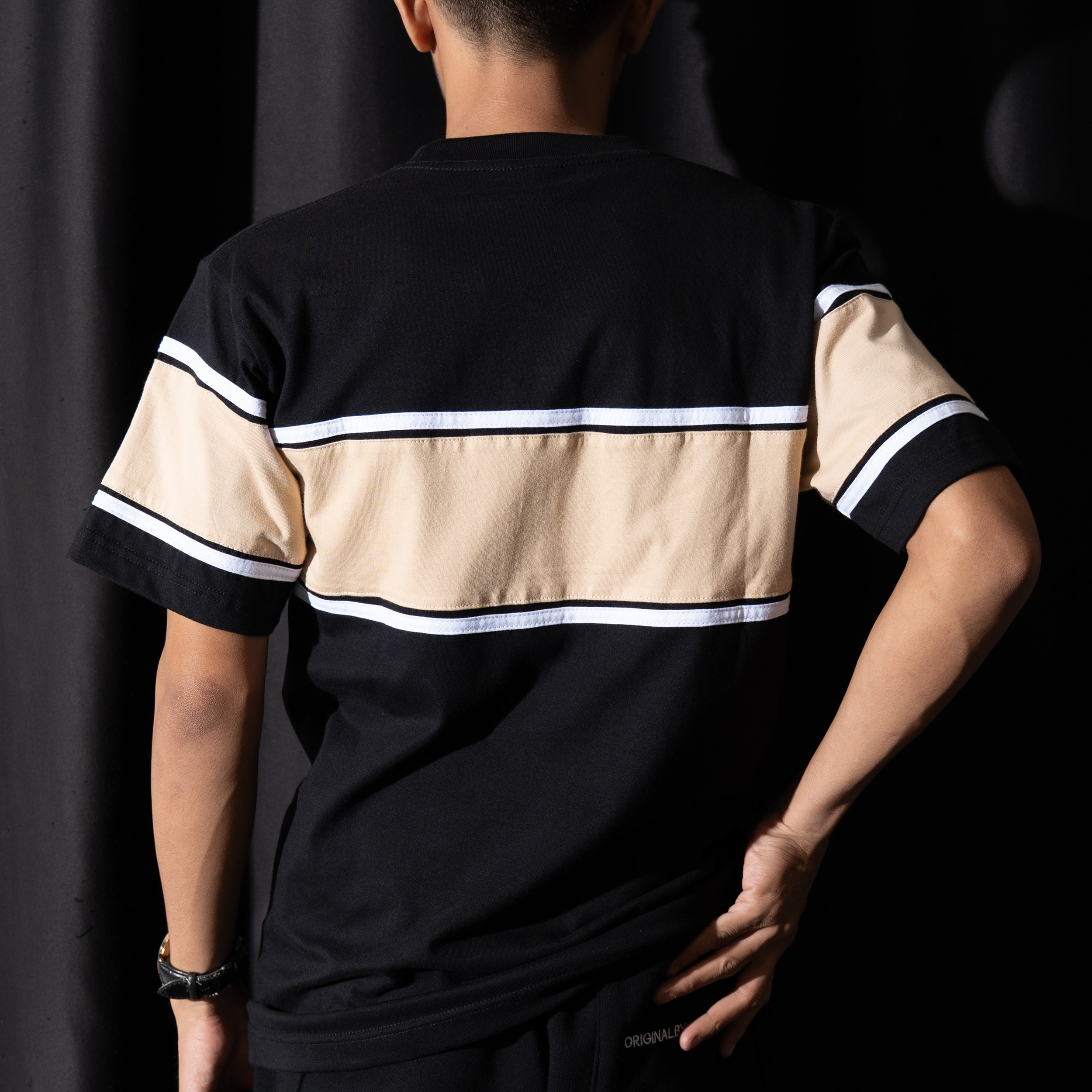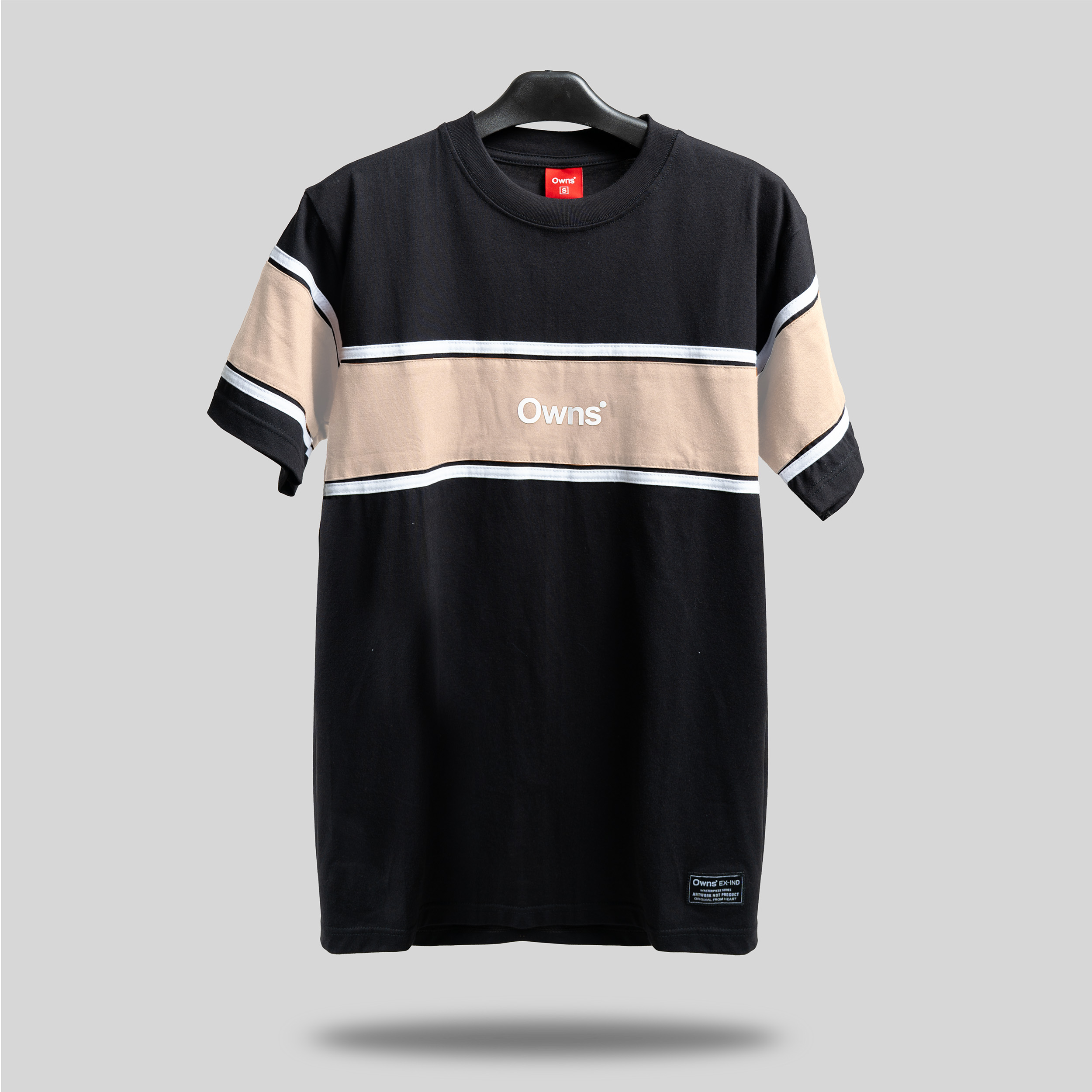 TS VR Castle Beige adalah t-shirt color-block modern dari OWNS Studio yang menggabungkan kesan clean, simple, dan versatile. Mengusung warna dasar black yang bold dan timeless, dipadukan dengan panel beige pada bagian dada serta lengan. Aksen garis putih kontras di sekeliling panel memberikan karakter sporty-minimalis yang khas dan mudah dikenali.