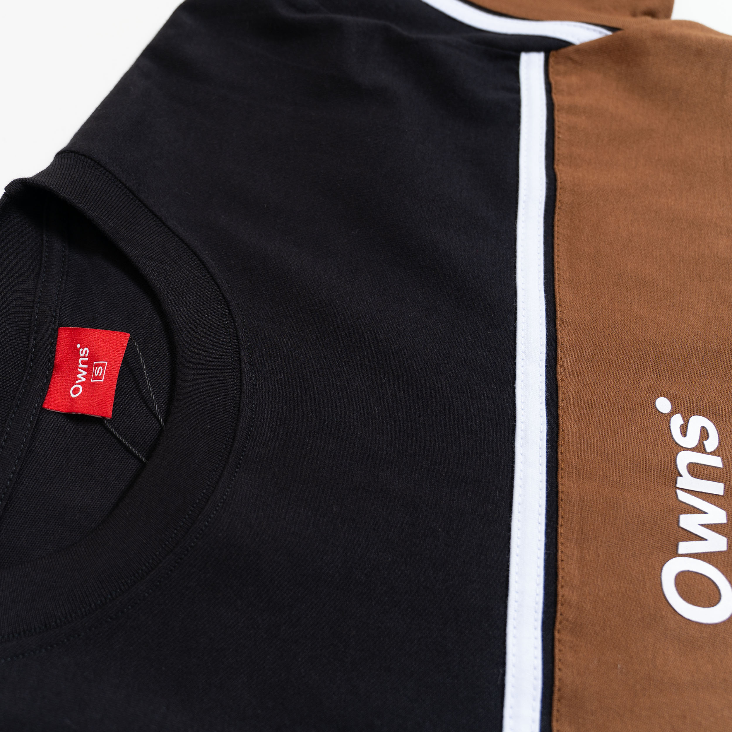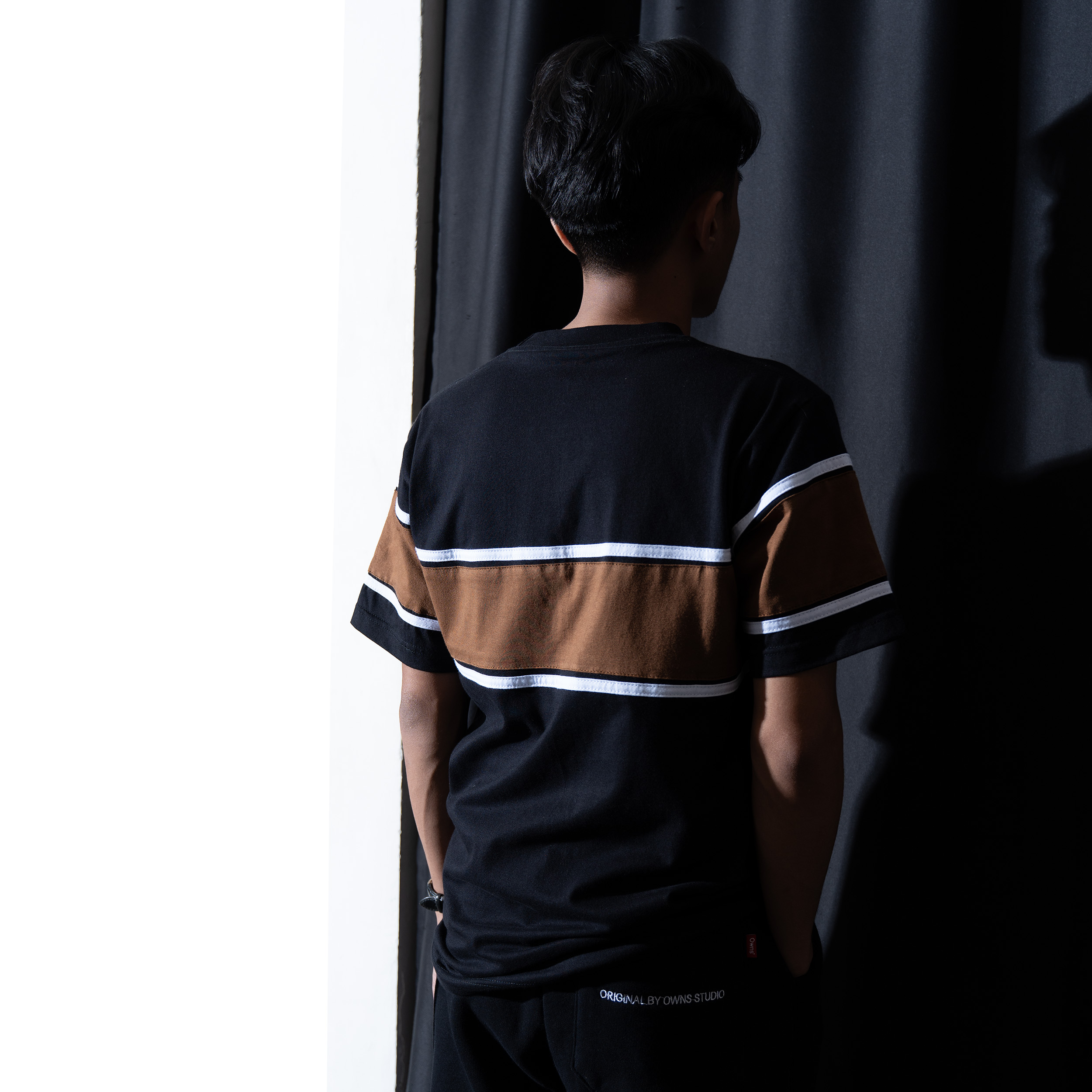 TS VR Castle Brown adalah t-shirt color-block modern dari OWNS Studio yang menghadirkan kombinasi warna bold namun tetap clean. Mengusung warna dasar black yang timeless, dipadukan dengan panel brown pada dada dan lengan. Aksen garis putih kontras memberi sentuhan sporty-minimalis yang membuat tampilannya semakin standout tanpa berlebihan.