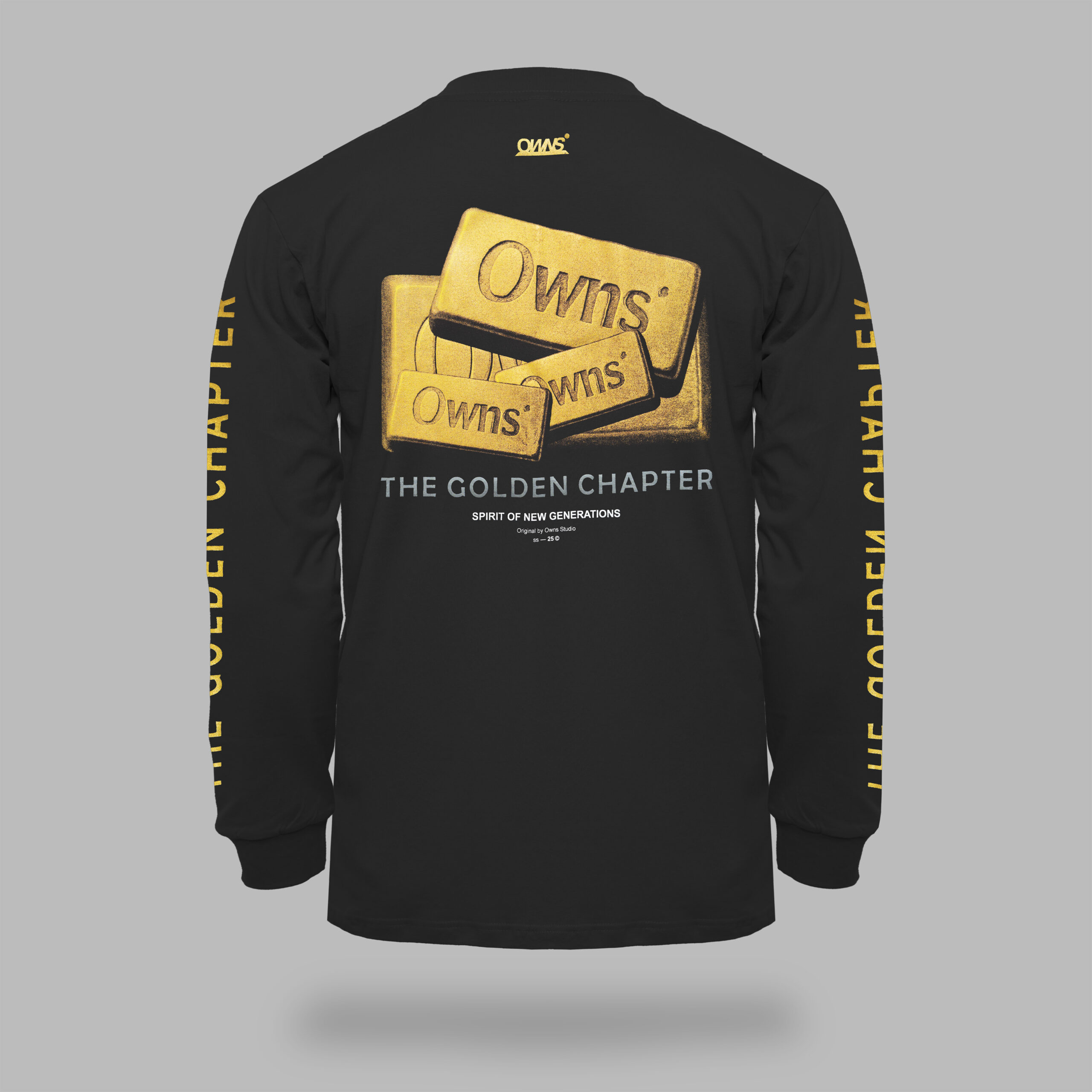 Longsleeve Golden Chapter hadir dengan desain eksklusif yang memadukan logo Owns® berwarna gold metallic di bagian depan, detail tulisan THE GOLDEN CHAPTER pada kedua lengan, serta grafis emas berbentuk gold bar di bagian belakang. Dibuat dari bahan cotton 20s yang lembut, adem, dan nyaman dipakai sehari-hari, long sleeve ini cocok untuk gaya streetwear, hangout, maupun koleksi edisi spesial dengan nuansa premium.