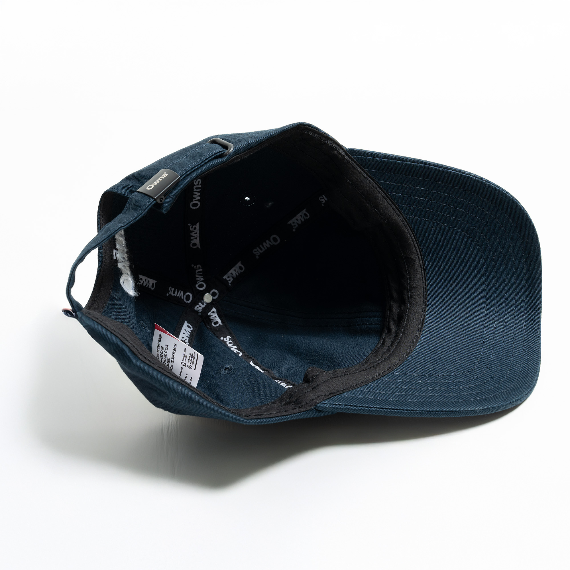 Bagian depan dihiasi bordir tipografi klasik bertuliskan “Owns Fix Int.” yang tampil subtle namun tegas sebagai identitas visual. Dilengkapi eyelet ventilasi udara untuk menjaga sirkulasi tetap optimal. Pada bagian belakang, terdapat strap adjustable yang memberikan fleksibilitas ukuran dan kenyamanan saat digunakan.