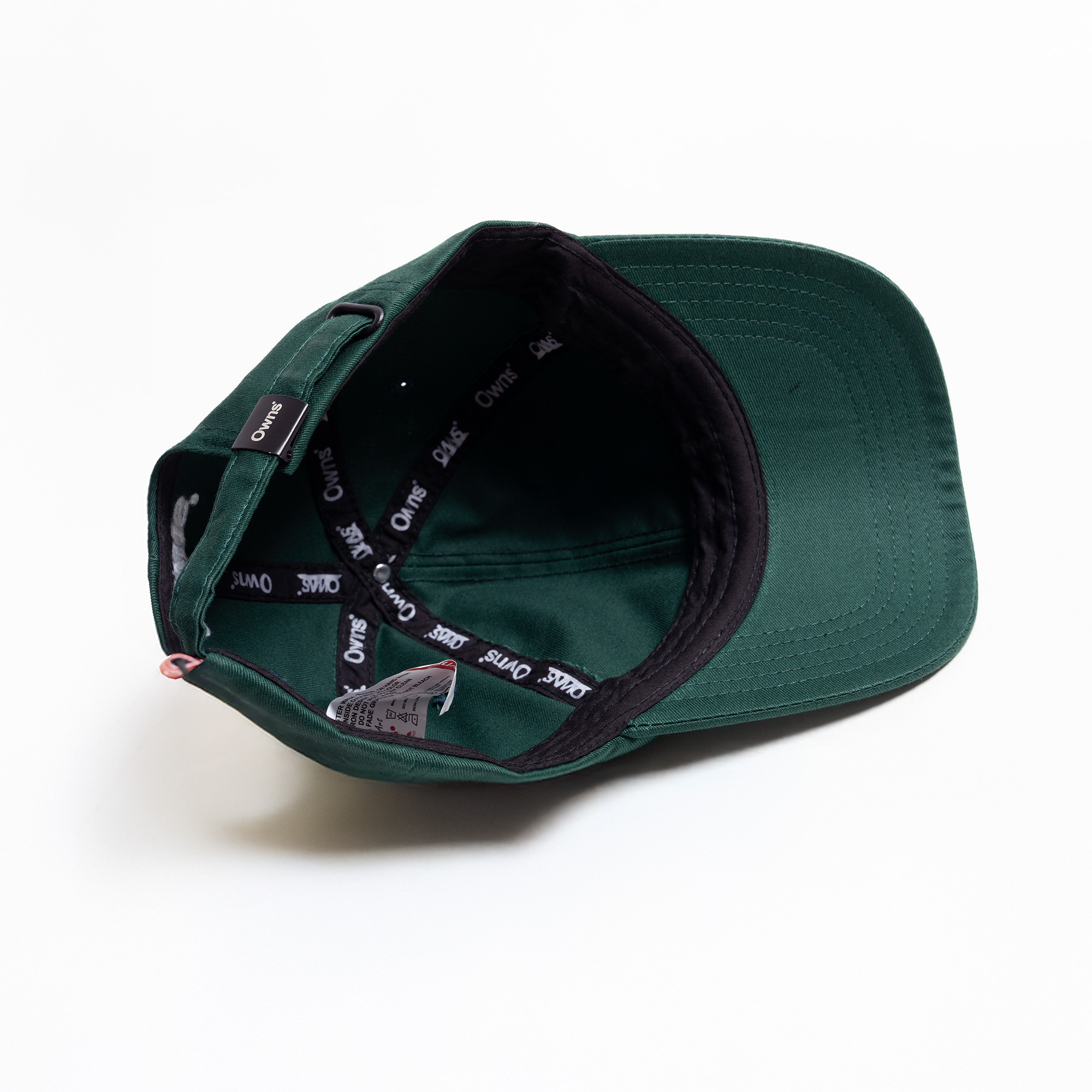 Bagian depan dihiasi bordir tipografi klasik bertuliskan “Limited Liabillity Company – Owns Ex Ind.” sebagai statement visual yang kuat dan autentik. Detail eyelet ventilasi udara disematkan untuk menjaga sirkulasi tetap optimal. Pada bagian belakang, terdapat strap adjustable yang memberikan fleksibilitas ukuran serta kenyamanan saat digunakan.
